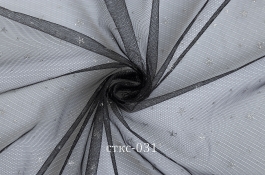 Нежная прозрачная сетка с элегантными бархатными мушками в черном цвете. Диаметр мушек — 0,3 см. Материал тонкий, легкий, слегка эластичный. Он очень пластичный и хорошо драпируется и струится в изделии. На ощупь чуть шероховатый. Сетка применяется для отделки женской одежды в качестве кокетки, рукавов, декоративных вставок, а также романтичных юбок, платьев, топов и блузок. В качестве подклада под прозрачную сетку используют шёлк, атлас, штапель.